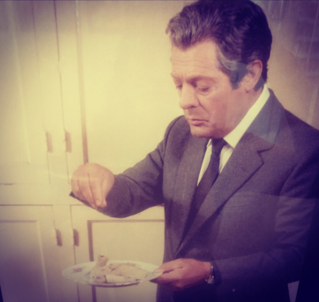Ma cosa stava facendo Mastroianni? Era intento a salare un piatto, sembrerebbe di carne, poco sapido. Anche i periodi storici che spesso rappresentava un poco melanconici, a mio avviso, dimostravano la voglia dell’attore e del regista di caratterizzare e accattivarne le trame.