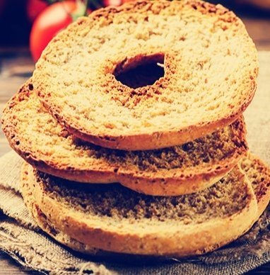 Infatti le sue origini risalgono a circa il X sec. a.C., all’epoca della civiltà Fenicia, quando i mercanti durante le loro navigazioni erano soliti consumare ciambelle scure di grano ammorbidite con acqua di mare e insaporite con olio d’oliva.
