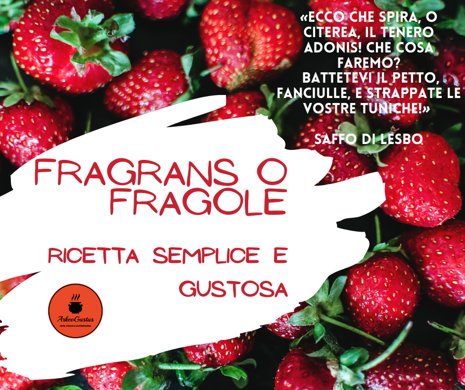Le fragole sono proprio il frutto per eccellenza primaverile e venivano spesso consumate durante il pasto in antichità. Gli antichi romani erano soliti preparare questa prelibatezza accompagnandola al miele e alla spezia per eccellenza più importante in assoluto sui banchetti: il pepe. Sicuramente la frutta era sempre presente, infatti se facciamo un giro a Pompei possiamo trovare la Bottega del Fruttivendolo Felix alla Regio 7, composta da un banco vendita dipinto di rosso con un grande clipeo giallo ove era rappresentata una coppa con la frutta. La bottega non era molto diversa da quelle che normalmente incontriamo nelle nostre città. La Taberna pomeraria di Felix presenta un bancone affrescato con elementi riconducibili a Bacco che si affaccia direttamente sulla strada e si possono intravedere i buchi dove veniva agganciato il supporto in legno su cui esporre la mercanzia.